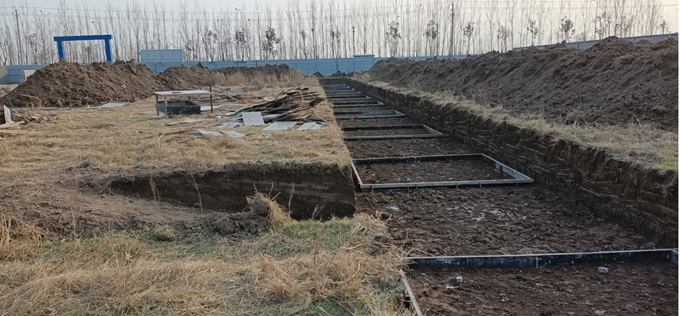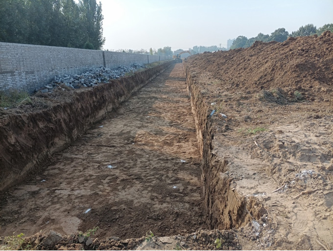 據圖紙定邊界線,確定高程、軸線等測量放線---開槽 (留技術交底記錄或圖紙會審記錄)