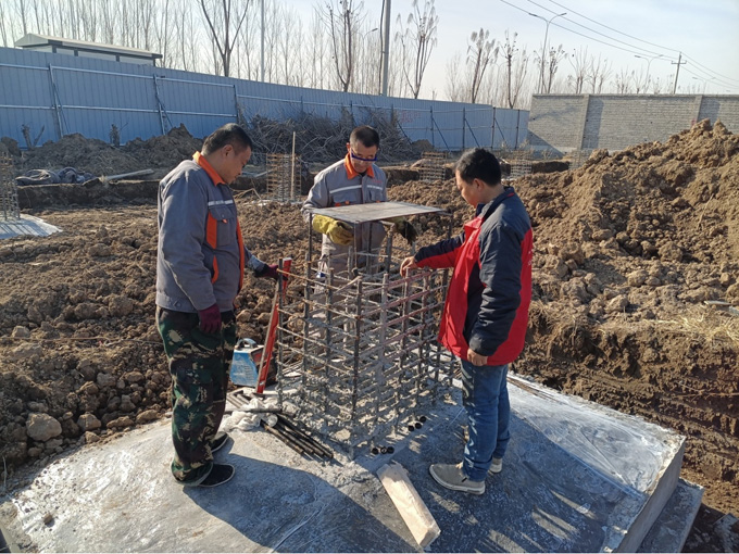 經緯儀進行地腳螺栓測量放線,鋼筋與地腳螺栓有很多交叉位置時,單根螺栓施工