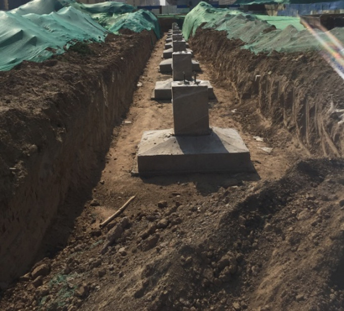 圈梁支模綁鋼筋澆筑養護; 承臺及基礎澆筑養護基礎驗收,驗收合格,養護完成,地下墻砌筑完成后基礎回填